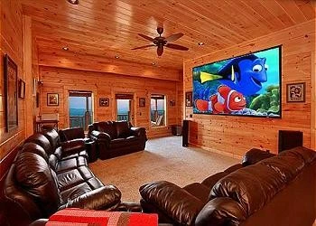 The more the merrier, right? At Smokin’ View Lodge, up to 31 people can hang out and enjoy a late night movie together. Make your way downstairs and you will find two, large leather sofas and a wall-mounted television, great for a group of guests to pop in their favorite movie for a splendid evening in the Smokies.