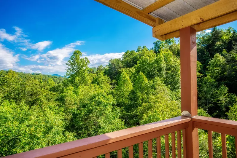 The deck on this level provides ample seating, and a soothing hot tub where guests can unwind after a busy day out in the Smokies