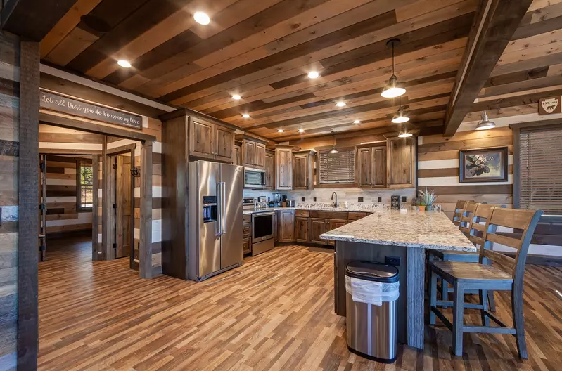 Welcome to Alpine Mountain Lodge! This newly constructed 3348 sqft 5 bedroom 5 bath cabin is located just minutes from action-packed Pigeon Forge, and offers all the comforts of home and then some! Alpine Mountain Lodge has parking for 4 vehicles, a theater room, arcade, and a private indoor pool!