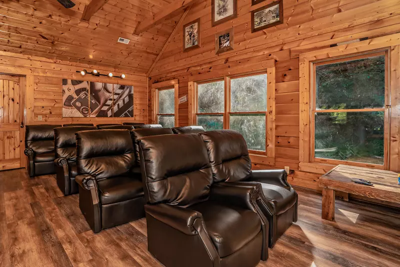 The Home Theater boasts plush reclining theater seating and a large HDTV with surround sound.