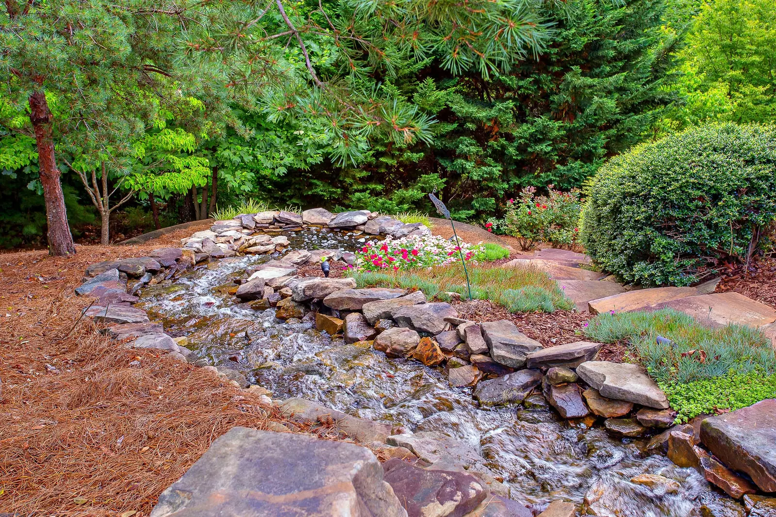 A path leads down to the amazing fire pit area where guests can gather and enjoy the amazing views as well as the calming sounds of the water from the nearby creek.