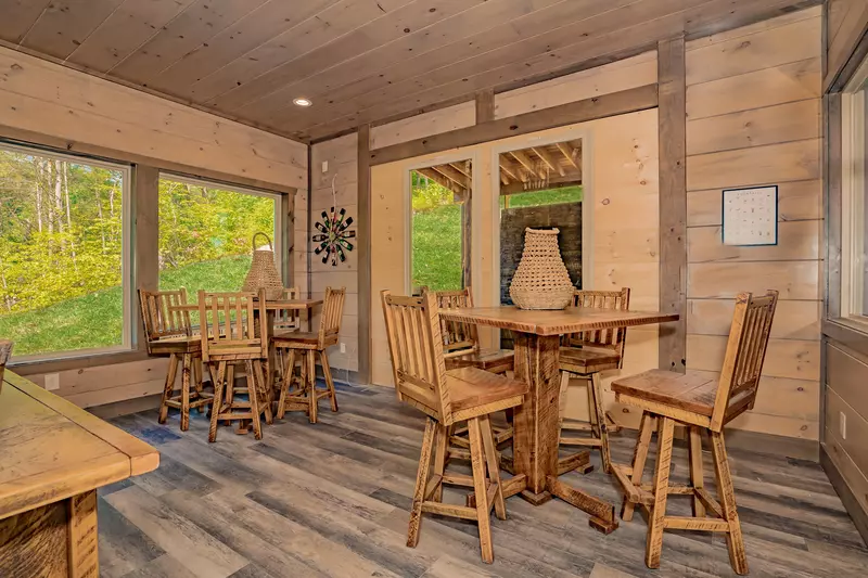 Step outside to the deck and you will find an outdoor dining area with a gas grill, as well as a fire pit if you just want to relax and take in the incredible mountain air! Need more excitement? Head on over to your very own personal basketball court and let your inner NBA MVP shine.