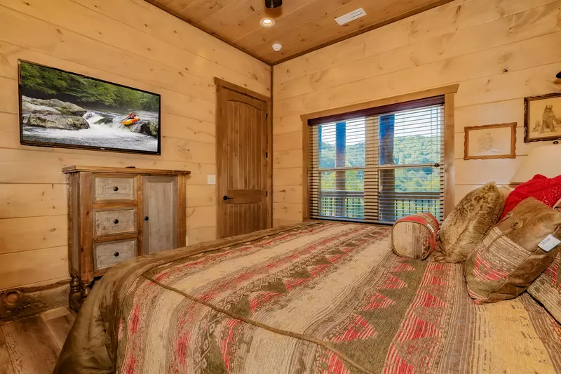 4 of the bedrooms on this level offer King size beds (two of which have futons for additional sleeping accommodations), HDTVs and attached (shower) bathrooms with 2 bedrooms also have deck access! The last bedroom is perfect for the kiddos offering 2 Queen size bunk beds, an HDTV, attached (tub/shower) bathroom with a clubhouse slide!