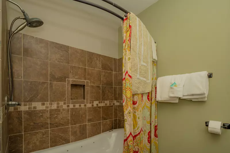 All 3 these bedrooms offer a king bed and HDTV. The master bedroom has an en-suite full bathroom with walk-in tiled shower, a soaker tub and wall-mounted TV.