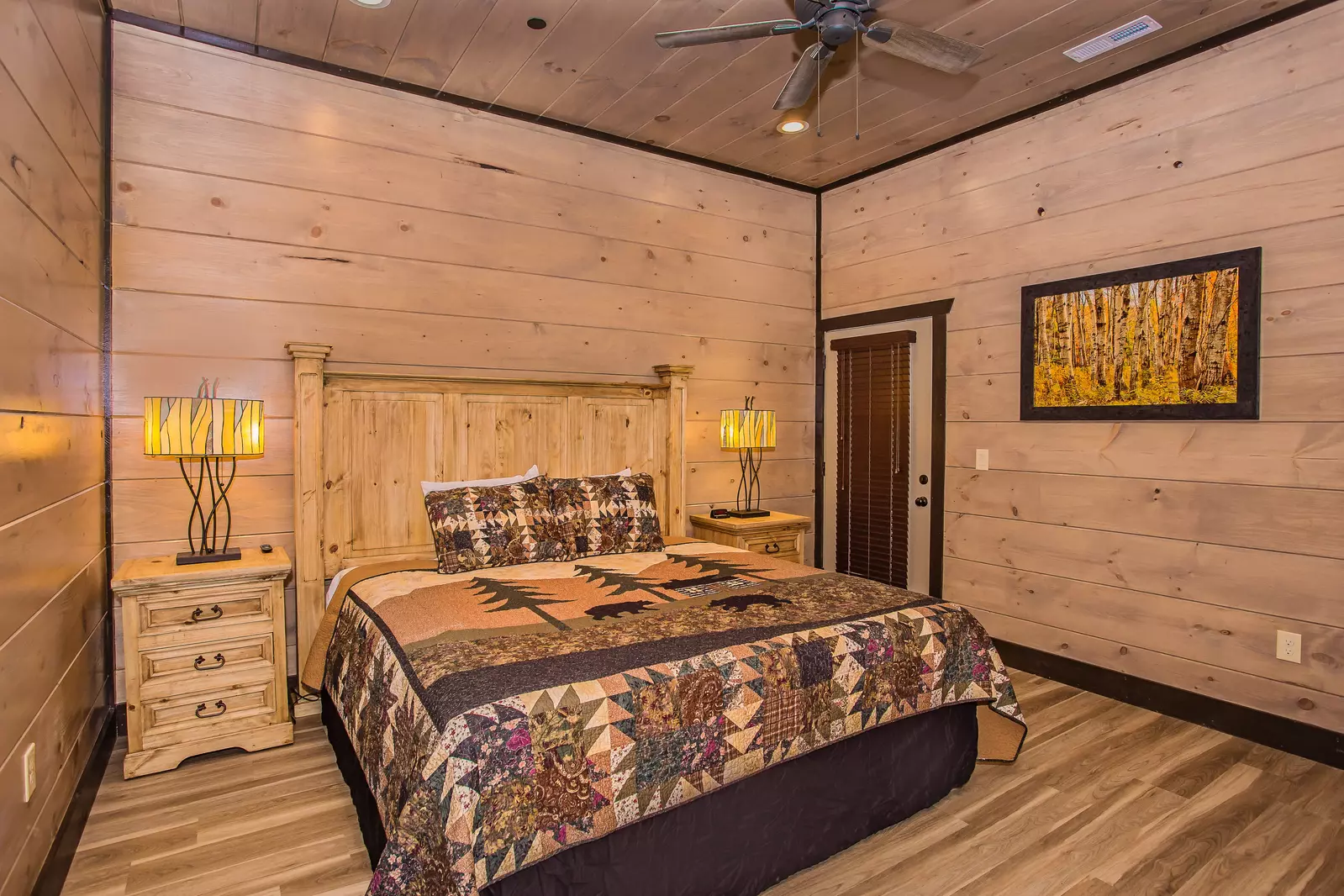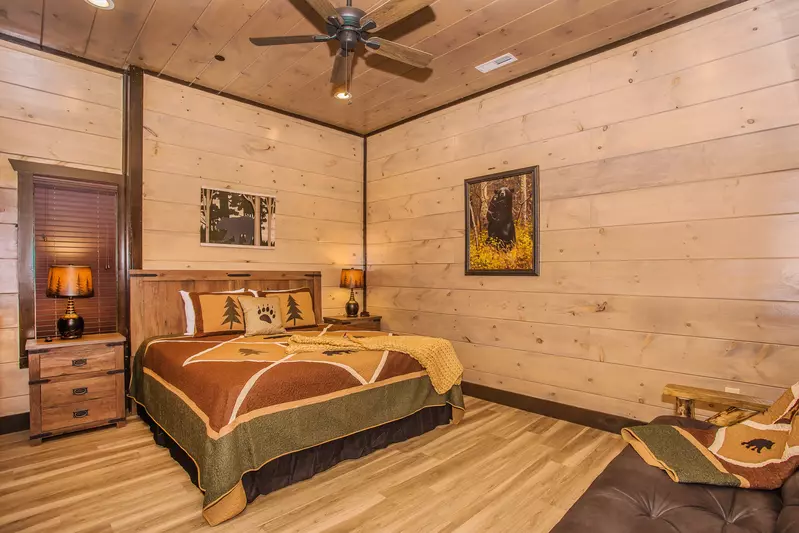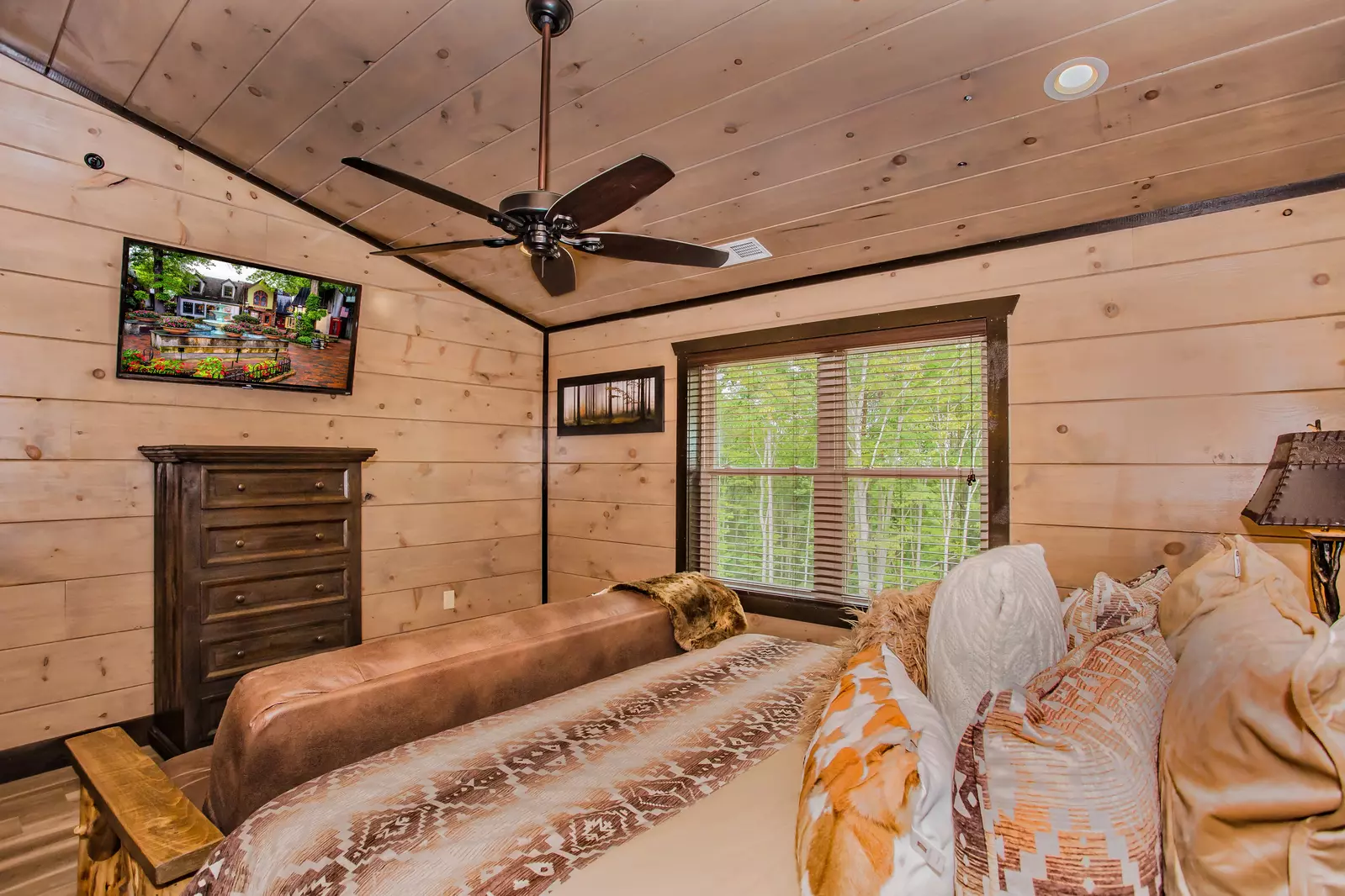 Enter into the bedroom located on this level and you will find a king-size bed, flat screen Roku HDTV, and attached bathroom with walk-in shower.