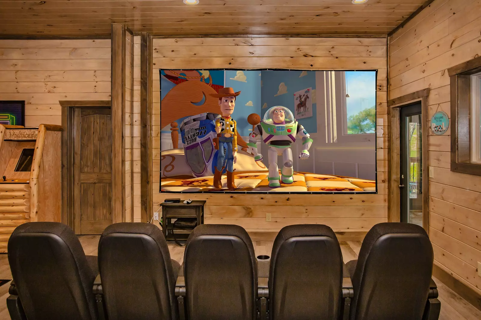 The Game Room features a pool table and a multicade arcade featuring 60 games! The huge theater will seat 15 easily! If this is not enough, step into your very own indoor pool!