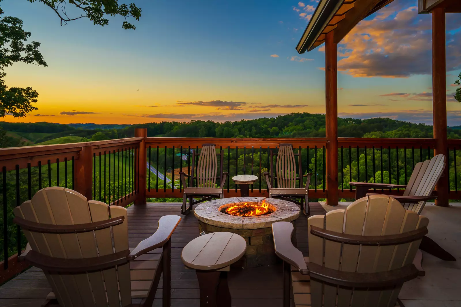Step outside to the deck and you will find an outdoor dining area with picnic tables, as well as a fire pit if you just want to relax and take in the incredible mountain view!