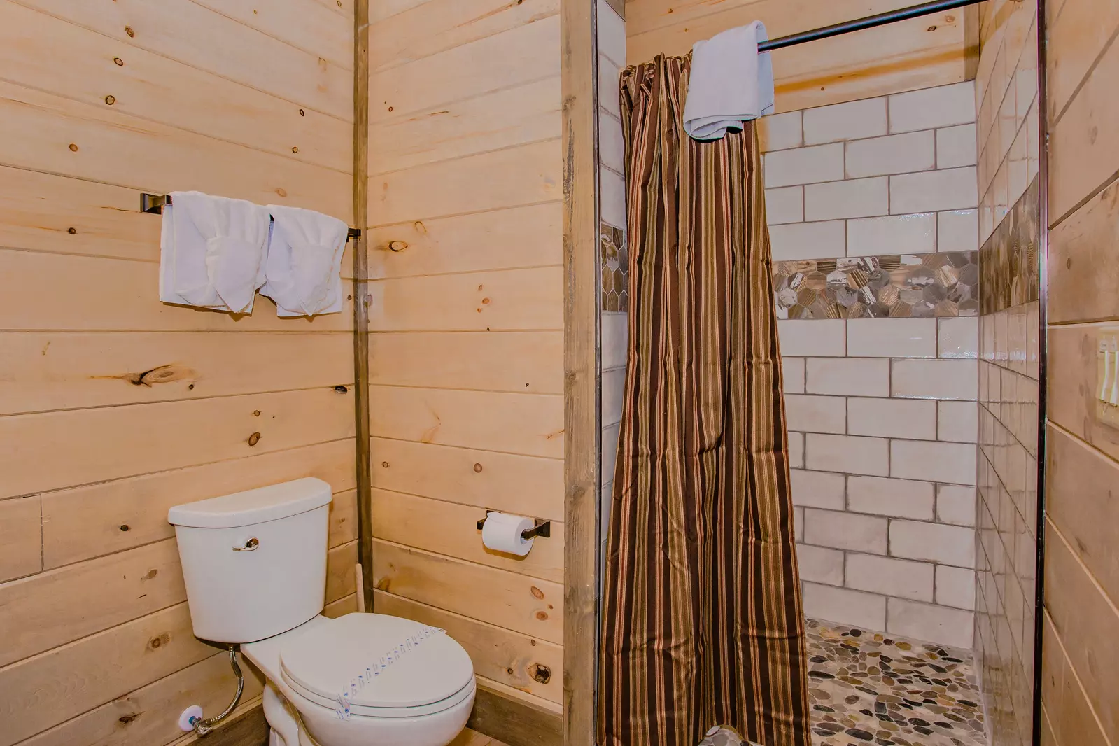 Five of the bedrooms on this level offer King size beds, futons for additional sleeping accommodations, flat-screen TVs and attached bathrooms with walk-in showers! The remaining two bedrooms offer two sets of Queen size bunk beds, as well as attached bathrooms with walk-in showers!