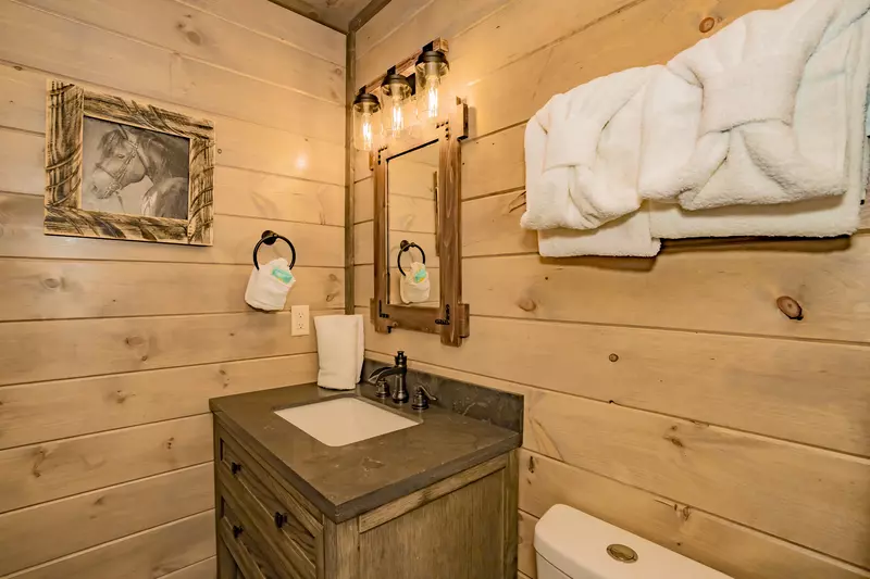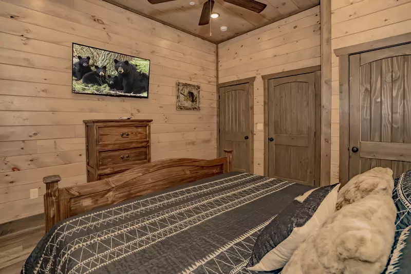 The bedroom on this level comes with a king bed, large HDTV and a full bathroom.