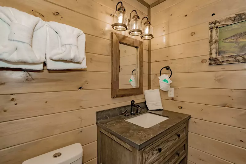 The remaining bedroom on this level comes with two queen over queen bunks. Each bedroom comes with a full bathroom and large HDTVs.