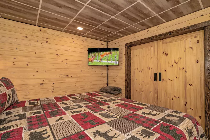 Three bedrooms on this level each offer a king-sized bed, HDTV, and private bathrooms—two with showers and one with a tub/shower combo. The fourth bedroom includes a queen-size bunk bed and an HDTV. A hall bathroom with a tub/shower and a washer/dryer complete this floor.