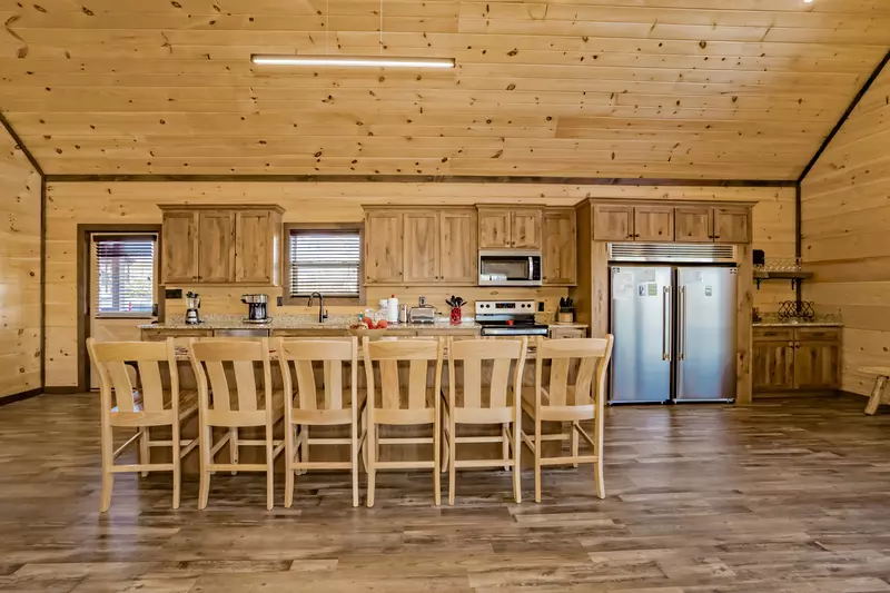 Seating includes a dining room table for 8, a cocktail table for 4, plus an additional 4 seats at the kitchen bar to enjoy your culinary masterpiece.