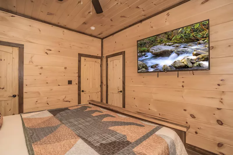 Another bedroom offers a king bed, flat screen HDTV, and an attached bathroom with tub/shower.